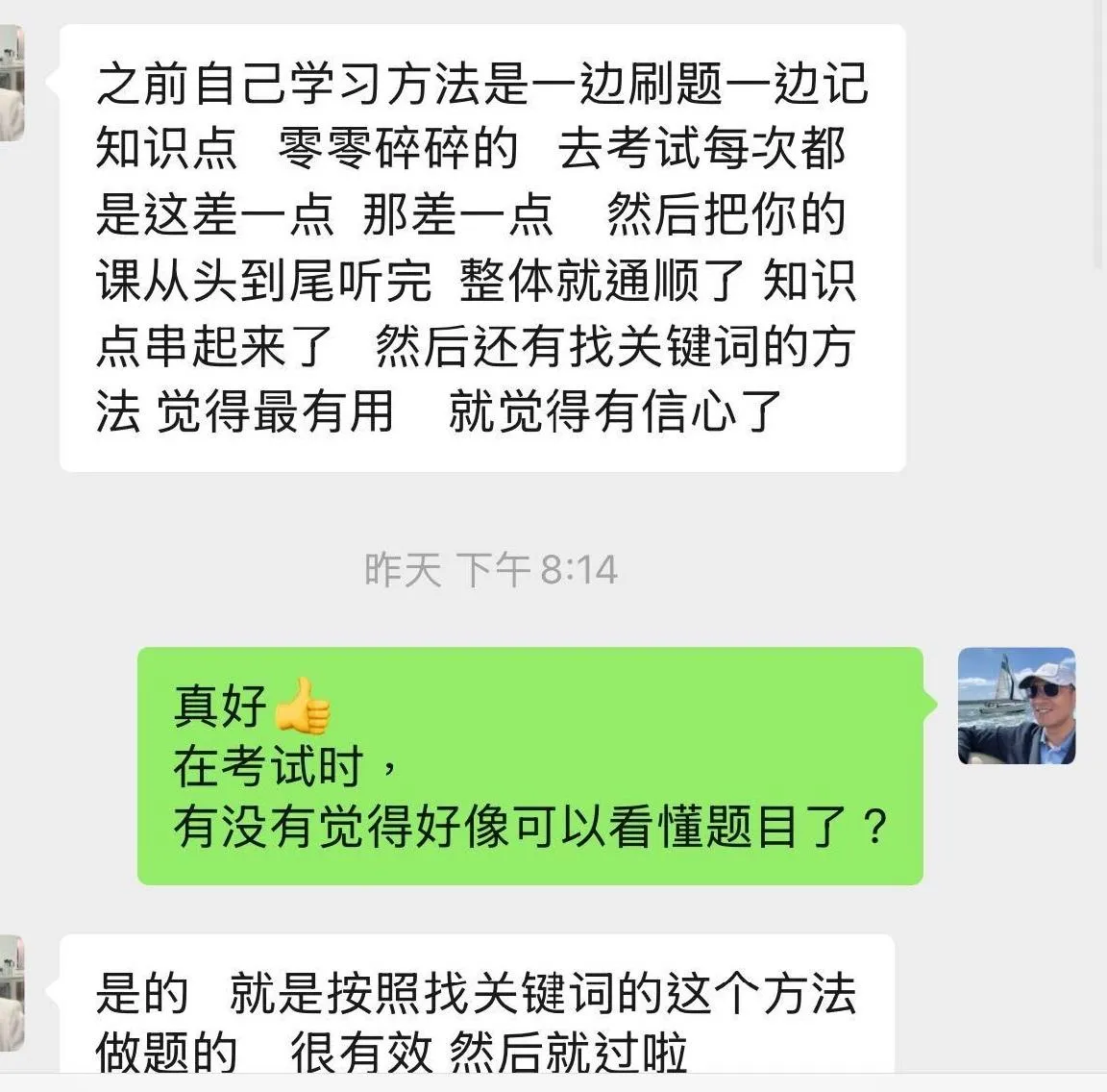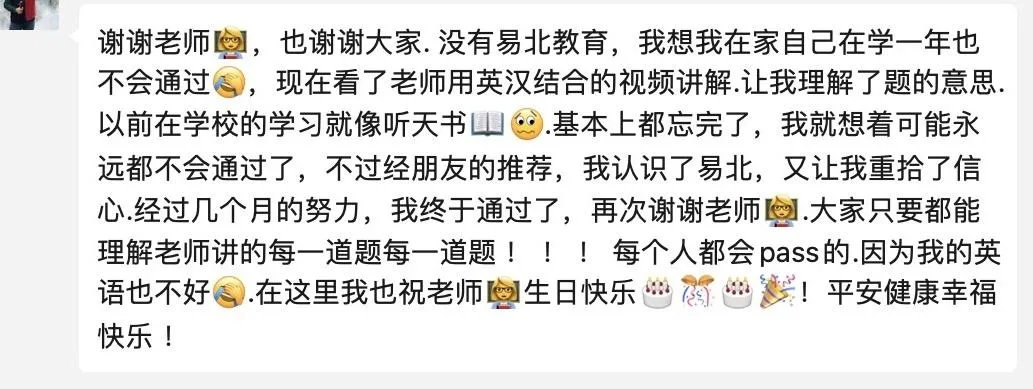 成功案例:无数学生,刚开始信心不足,甚至连基本字母都认不全,但通过120天的课程,成功突破心理障碍,顺利通过考试。